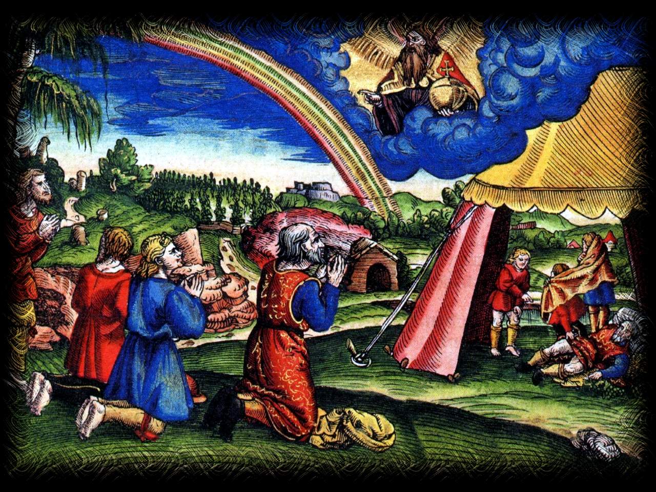 Capitel: 1 2 3 4 5 6 7 8 9 10 11 12 13 14 15 16 17 18 19 20 21 22 23 24 25 26 27 28 29 30 31 32 33 34 35 36 37 38 39 40 41 42 43 44 45 46 47 48 49 50 Die gantze Heilige Schrifft: Deudsch (Luther 1545) Das erste Buch Mose Capitel 9 VND Gott segenet Noah vnd seine Söne / vnd sprach / Seid fruchtbar vnd mehret euch / vnd erfüllet die Erde. 2 Ewerfurcht vnd schrecken sey vber alle Thier auff Erden / vber alle Vogel vnter dem Himel / vnd vber alles was auff dem Erdboden kreucht / vnd alle Fisch im Meer seien in ewer hende gegeben. 3 Alles was sich reget vnd lebet / das sey ewre Speise / wie das grüne Kraut / hab ichs euch alles gegeben. 4 ALleine esset das Fleisch nicht / das noch lebt in seinem Blut / 5 Denn ich wil auch ewrs Leibs blut rechen / vnd wils an allen Thieren rechen / vnd wil des Menschen leben rechen an einem jglichen Menschen / als der sein Bruder ist. 6 WEr Menschen Blut vergeusset / Des Blut sol auch durch Menschen (1) vergossen werden / Denn Gott hat den Menschen zu seinem Bilde gemacht. 7 Seid fruchtbar vnd mehret euch / vnd reget euch auff Erden / das ewer viel drauff werden. 8 VND Gott sagt zu Noah vnd seinen Sönen mit jm / 9 Sihe / Jch richte mit euch einen Bund auff / vnd mit ewrem Samen nach euch / 10 vnd mit allem lebendigen Thier bey euch / an Vogel / an Vieh / vnd an allen Thieren auff Erden bey euch / von allem das aus dem Kasten gegangen ist / waserley Thier es sind auff Erden. 11 Vnd richte meinen Bund also mit euch auff / Das hinfurt nicht mehr alles Fleisch verderbet sol werden / mit dem wasser der Sindflut / vnd sol hinfurt keine Sindflut mehr komen / die die Erde verderbe. 12 VND Gott sprach / Das ist das Zeichen des Bunds / den ich gemacht habe zwischen mir vnd euch / vnd allem lebendigen Thier bey euch hin furt ewiglich. 13 Meinen Bogen hab ich gesetzt in die wolcken / der sol das Zeichen sein des Bunds / zwischen Mir vnd der Erden. 14 Vnd wenn es kompt / das ich wolcken vber die Erden füre / So sol man meinen Bogen sehen / in den wolcken / 15 Als denn wil ich gedencken an meinen Bund / zwischen Mir vnd euch / vnd allem lebendigen Thier / in allerley Fleisch / Das nicht mehr hin furt eine Sindflut kome / die alles Fleisch verderbe. 16 Darumb sol mein Bogen in den wolcken sein / das ich jn ansehe / vnd gedencke an den ewigen Bund zwischen Gott vnd allem lebendigen Thier in allem Fleisch / das auff Erden ist. 17 Daselb saget Gott auch zu Noah / Dis sey das Zeichen des Bunds / den ich auffgerichtet habe zwischen Mir vnd allem Fleisch auff Erden. 18 DJE söne Noah / die aus dem Kasten giengen / sind diese / Sem / Ham / Japheth / Ham aber ist der Vater Canaan. 19 Das sind die drey söne Noah / von denen ist alles Land besetzt. 20 NOah aber fieng an vnd ward ein Ackerman / vnd pflantzte Weinberge. 21 Vnd da er des Weins tranck / ward er truncken / vnd lag in der Hütten auffgedeckt. 22 Da nu Ham / Canaans vater / sahe seines Vaters scham / saget ers seinen beiden Brüdern draussen. 23 Da nam Sem vnd Japheth ein Kleid / vnd legten es auff jre beide Schulder / vnd giengen rücklings hin zu / vnd deckten jres Vaters scham zu / Vnd jr angesicht war abgewand / das sie jres Vaters scham nicht sahen. 24 ALS nu Noah erwacht von seinem Wein / vnd erfur / was jm sein kleiner Son gethan hatte / 25 sprach er / Verflucht sey Canaan / vnd sey ein Knecht aller knecht vnter seinen Brüdern. 26 Vnd sprach weiter / Gelobet sey Gott der HERR des Sems / Vnd Canaan sey sein Knecht. 27 Gott breite Japheth aus / vnd las jn wonen in den Hütten des Sems / Vnd Canaan sey sein Knecht. 28 NOah aber lebet nach der Sindflut drey hundert vnd funffzig jar / 29 Das sein gantz Alter ward / neunhundert vnd funffzig jar / vnd starb. (1) Hie ist das weltlich Schwert eingesetzt / Das man die Mörder tödten sol.
