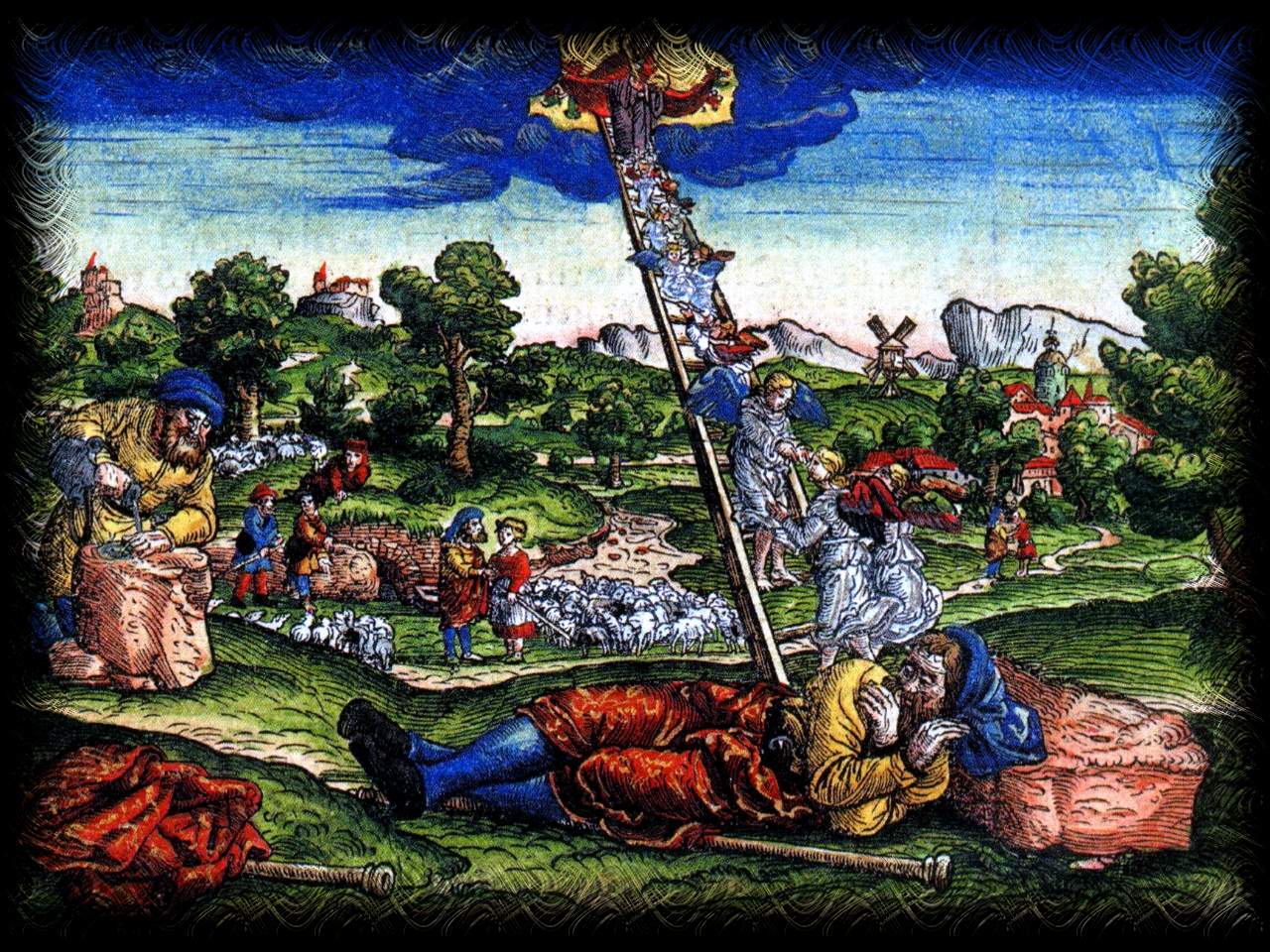 (1) Hie wird dem dritten Patriarchen / Christus verheissen / der Heiland aller Welt / vnd das künfftige Euangelium von Christo in allen Landen zu predigen / durch die Engel auff der Leiter furgebildet.