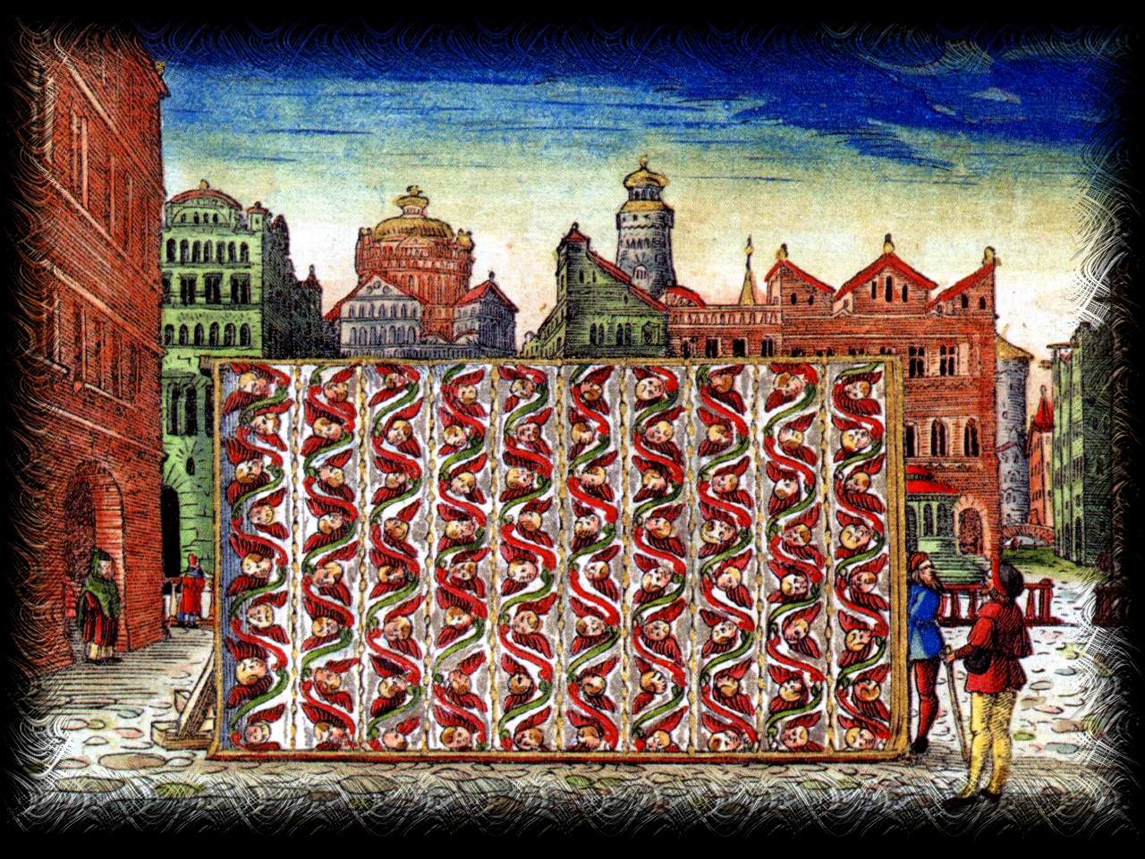 Die lenge eins Teppichs sol acht vnd zwenzig ellen sein / die breite vier ellen / vnd sollen alle zehen gleich sein /