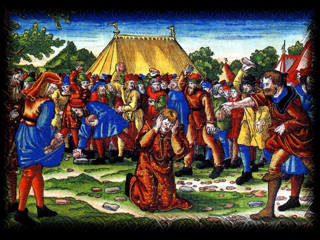 (1) Das sind die Schauwbrot / welche die Kuchen heissen / darumb das sie breit waren wie kuchen. Vnd sind Denckbrot / darumb / das sie damit Gottes gedencken vnd von jm predigen sollen / Gleich wie Christus vns befilhet / das wir sein gedencken / Das ist seinen Tod verkündigen vnd predigen sollen.