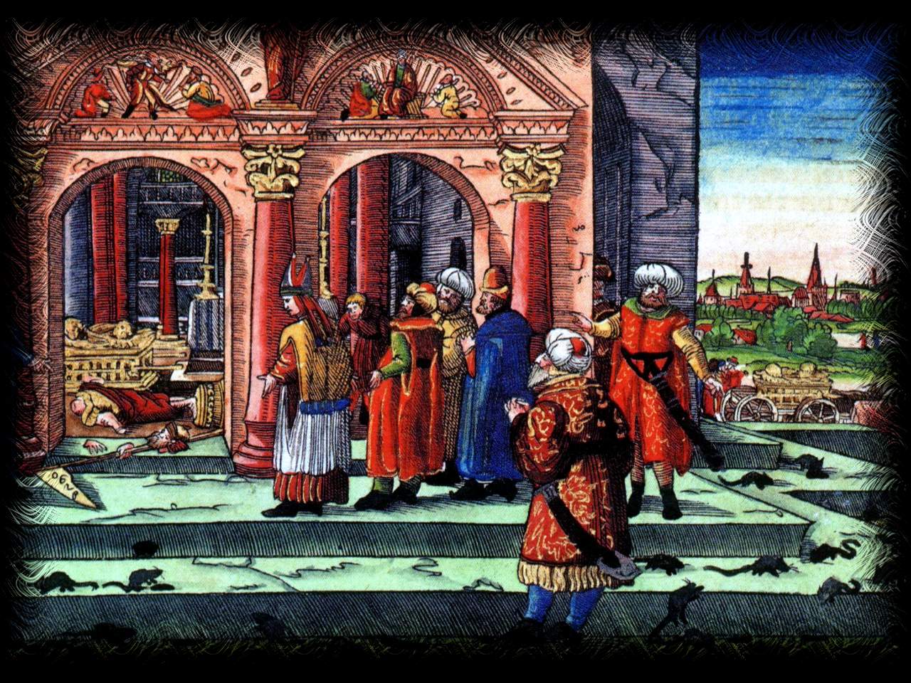 Capitel: 1 2 3 4 5 6 7 8 9 10 11 12 13 14 15 16 17 18 19 20 21 22 23 24 25 26 27 28 29 30 31 Die gantze Heilige Schrifft: Deudsch (Luther 1545) Das erste Buch Samuel Capitel 5 DJE Philister aber namen die Lade Gottes / vnd brachten sie von EbenEzer gen Asdod / 2 in das haus Dagon / vnd stelleten sie neben Dagon. 3 Vnd da die von Asdod des andern morgens früe auff stunden / funden sie Dagon auff seinem andlitz ligen auff der erden / fur der Laden des HERRN / Aber sie namen den Dagon vnd setzten jn wider an seinen ort. 4 Da sie aber des andern morgens früe auff stunden / funden sie Dagon aber mal auff seinem andlitz ligen auff der erden / fur der Laden des HERRN / Aber sein Heubt vnd seine beide Hende abgehawen / auff der schwelle / das der strumpff allein drauff lag. 5 Darumb tretten die Priester Dagon / vnd alle die in Dagon haus gehen / nicht auff die schwelle Dagon zu Asdod / bis auff diesen tag. 6 ABer die hand des HERRN ward schweer vber die von Asdod / vnd verderbt sie / vnd schlug Asdod vnd alle jre grentze an heimlichen örten. 7 Da aber die Leute zu Asdod sahen das so zugieng / sprachen sie / Lasst die Lade des Gottes Jsrael nicht bey vns bleiben / Denn seine hand ist zu hart vber vns vnd vnsern Gott Dagon. 8 Vnd sandten hin vnd versamleten alle Fürsten der Philister zu sich / vnd sprachen / Was sollen wir mit der Lade Gottes Jsrael machen? Da antworten sie / Lasst die von Gath / die Lade des Gottes Jsrael vmb her tragen / Vnd sie trugen die Lade des Gottes Jsrael vmbher. 9 Da sie aber dieselben vmbher trugen / ward durch die Hand des HERRN in der Stad ein seer gros Rumor / vnd schlug die Leute in der Stad / beide klein vnd gros / vnd kriegten heimliche Plage an heimlichen örten. 10 DA sandten sie die Lade des HERRN gen Ekron. Da aber die Lade Gottes gen Ekron kam / schrien die von Ekron / Sie haben die Lade Gottes vmbher getragen zu mir / das sie mich tödte vnd mein volck. 11 Da sandten sie hin / vnd versamleten alle Fürsten der Philister / vnd sprachen / Sendet die Lade des Gottes Jsrael wider an jren Ort / das sie mich vnd mein volck nicht tödte. Denn die hand Gottes machte ein seer gros rumor mit würgen in der gantzen Stad / 12 Vnd welche Leute nicht sturben die wurden geschlagen an heimlichen örten / das das geschrey der Stad auff gen Himel gieng.