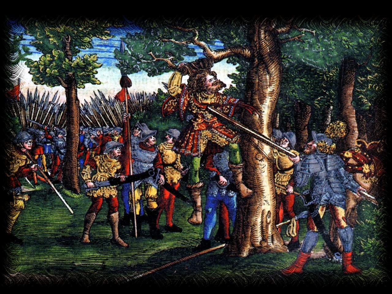 Capitel: 1 2 3 4 5 6 7 8 9 10 11 12 13 14 15 16 17 18 19 20 21 22 23 24 Die gantze Heilige Schrifft: Deudsch (Luther 1545) Das ander Buch Samuel Capitel 18 VND Dauid ordenet das Volck / das bey jm war / vnd setzt vber sie Heubtleute vber tausent vnd vber hundert. 2 Vnd sandte aus des Volcks ein dritten teil vnter Joab / vnd ein dritten teil vnter Abisai dem son ZeruJa Joabs bruder / vnd ein dritten teil vnter Jthai dem Gethiter. Vnd der König sprach zum Volck / Jch wil auch mit euch ausziehen. 3 Aber das Volck sprach / Du solt nicht ausziehen / Denn ob wir gleich fliehen / oder die helfft sterben / so werden sie sich vnser nicht annemen / Denn du bist als wenn vnser zehen tausent were / So ists nu besser / das du vns aus der Stad helffen mügest. 4 Der König sprach zu jnen / Was euch gefelt / das wil ich thun. Vnd der König trat ans Thor / vnd alles Volck zoch aus bey hunderten vnd bey tausent. 5 VND der König gebot Joab vnd Abisai vnd Jthai vnd sprach / Faret mir seuberlich mit den Knaben Absalom / Vnd alles Volck hörets / da der König gebot allen Heubtleuten vmb Absalom. 6 VND da das Volck hin aus kam auffs feld / Jsrael entgegen / hub sich der streit im walde Ephraim. 7 Vnd das volck Jsrael ward daselbs geschlagen fur den knechten Dauid / das desselben tages eine grosse Schlacht geschach / zwenzig tausent Man. 8 Vnd war daselbs der streit zustrewet auff allem lande / Vnd der Wald frass viel mehr Volcks des tags / denn das Schwert frass. 9 VND Absalom begegenet den knechten Dauid / vnd reit auff einem Maul / Vnd da das Maul vnter eine grosse dicke Eiche (1) kam / behieng sein Heubt an der Eichen / vnd schwebt zwischen Himel vnd erden / Aber sein Maul lieff vnter jm weg. 10 DA das ein Man sahe / saget ers Joab an / vnd sprach / Sihe / ich sahe Absalom an einer Eichen hangen. 11 Vnd Joab sprach zu dem Man ders jm hatte angesagt / Sihe / sahestu das / Warumb schlugestu jn nicht daselbs zur erden? So wolt ich dir von meinet wegen zehen Silberlinge vnd einen Gürtel gegeben haben. 12 Der Man sprach zu Joab / Wenn du mir tausent Silberlinge in meine hand gewogen hettest / so wolt ich dennoch meine hand nicht an des Königes Son geleget haben / Denn der König gebot dir vnd Abisai vnd Jthai fur vnsern ohren / vnd sprach / Hütet euch das nicht jemand dem knaben Absalom (2). 13 Oder wenn ich etwas falsches gethan hette auff meiner Seelen fahr / weil dem Könige nichts verholen wird / würdestu selbst wider mich gestanden sein. 14 JOab sprach / Jch kan nicht so lang bey dir verziehen. Da nam Joab drey Spiesse in seine hand / vnd sties sie Absalom ins hertz / da er nocht lebt / an der Eichen. 15 Vnd zehen knaben Joabs Waffentreger / machten sich vmb her vnd schlugen in zu tod. 16 Da blies Joab die Posaunen / vnd bracht das Volck wider / das es nicht weiter Jsrael nachiaget / Denn Joab wolt des Volcks verschonen. 17 VND sie namen Absalom vnd worffen jn in den Wald in eine grosse Gruben / vnd legten ein seer grossen hauffen Stein auff jn. Vnd das gantz Jsrael floh / ein jglicher in seine Hütten. 18 Absalom aber hatte jm eine Seule auffgericht da er noch lebet / die stehet im Königs grunde / Denn er sprach / Jch habe keinen Son / darumb sol dis meines namens Gedechtnis sein / Vnd hies die Seule nach seinem namen / Vnd heisst auch bis auff diesen tag / Absaloms raum. 19 AHimaaz der son Zadok sprach / Lieber / Las mich lauffen vnd dem Könige verkündigen / das der HERR jm Recht verschafft hat von seiner Feinde hende. 20 Joab aber sprach zu jm / Du bringest heute keine gute Botschafft / Einen andern tag soltu Botschafft bringen vnd heute nicht / Denn des Königs son ist tod. 21 Aber zu Cusi sprach Joab / Gehe hin vnd sage dem Könige an / was du gesehen hast / Vnd Cusi betet Joab an vnd lieff. 22 Ahimaaz aber der son Zadok sprach aber mal zu Joab / Wie / wenn ich auch lieffe dem Cusi nach? Joab sprach / Was wiltu lauffen / mein Son? Kom her / du wirst nicht eine gute Botschafft bringen. 23 Wie / wenn ich lieff? Er sprach zu jm / So lauffe doch / Also lieff Ahimaaz stracks wegs / vnd kam Cusi vor. 24 DAuid aber sas zwisschen zweien Thoren / Vnd der Wechter gieng auffs Dach des thors an der mauren / vnd hub seine augen auff / vnd sahe einen Man lauffen allein / 25 Vnd rieff vnd sagts dem König an. Der König aber sprach / Jst er alleine / so ist eine gute Botschafft in seinem munde. Vnd da der selbige gieng vnd erzu kam / 26 sahe der Wechter einen andern Man lauffen / vnd rieff in das thor / vnd sprach / Sihe / ein Man leufft alleine / Der König aber sprach / Der ist auch ein guter Bote. 27 Der Wechter sprach / Jch sehe des ersten laufft / als den laufft Ahimaaz des sons Zadok / Vnd der König sprach / Es ist ein guter Man / vnd bringt eine gute Botschafft. 28 AHimaaz aber rieff / vnd sprach zum Könige / Friede / vnd betet an fur dem Könige auff sein andlitz zur erden / vnd sprach / Gelobt sey der HERR dein Gott / der die Leute / die jre hand wider meinen Herrn den König auffhuben / vbergeben hat. 29 DEr König aber sprach / Gehet es auch wol dem knaben Absalom? Ahimaaz sprach / Jch sahe ein gros getümmel da des Königs knecht Joab / mich deinen Knechte sandte / vnd weis nicht was es war. 30 Der König sprach / Gehe erumb vnd trit da her / Vnd er gieng erumb vnd stund alda. 31 SJhe / da kam Cusi / vnd sprach / Hie gute Botschafft / mein Herr König / Der HERR hat dir heute Recht verschafft / von der hand aller die sich wider dich aufflehneten. 32 DEr König aber sprach zu Cusi / Gehet es dem knaben Absalom auch wol? Cusi sprach / Es müsse allen Feinden meins Herrn königes gehen / wie es dem Knaben gehet / vnd allen die sich wider dich aufflehnen vbel zu thun. 33 Da ward der König trawrig / vnd gieng hin auff den Saal im thor vnd weinet / vnd im gehen sprach er also / Mein son Absalom / mein son / mein son Absalom / Wolt Gott / Jch müste fur dich sterben / O Absalom / mein Son / mein Son. (1) Das ist / Esstrige. (2) Vernim / Leide thu.