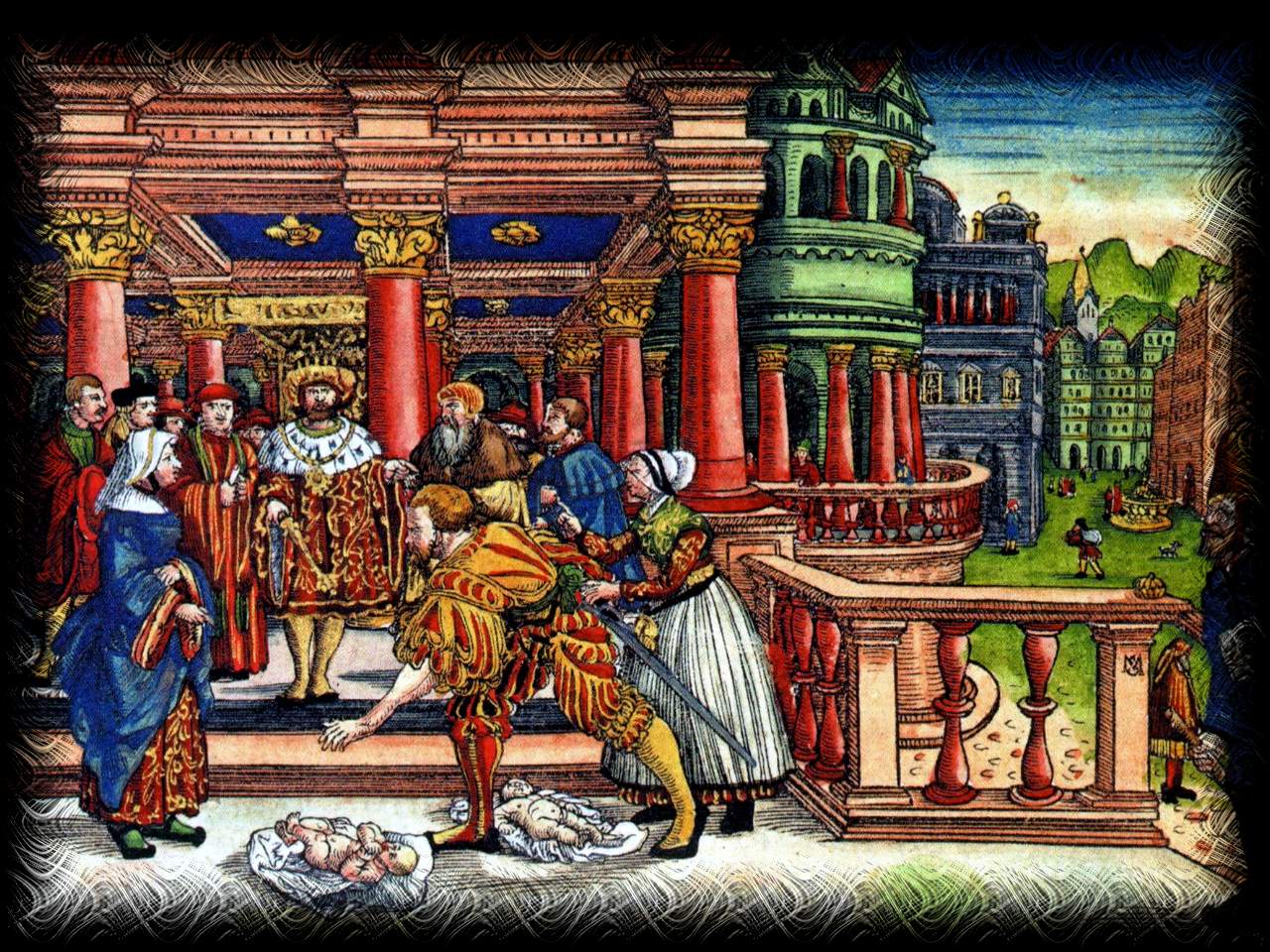 Capitel: 1 2 3 4 5 6 7 8 9 10 11 12 13 14 15 16 17 18 19 20 21 22 Die gantze Heilige Schrifft: Deudsch (Luther 1545) Das erste Buch der Könige Capitel 3 VND Salomo befreundte sich mit Pharao dem könig in Egypten / vnd nam Pharao tochter / vnd bracht sie in die Stad Dauids / bis er ausbawet sein Haus / vnd des HERRN Haus / vnd die mauren vmb Jerusalem her. 2 Aber das Volck opfferte noch auff den Höhen / Denn es war noch kein Haus gebawet dem Namen des HERRN bis auff die zeit. 3 Salomo aber hatte den HERRN lieb / vnd wandelt nach den Sitten seins vaters Dauid / On das er auff den Höhen opfferte vnd reucherte. 4 Vnd der könig gieng hin gen gibeon / daselbs zu opffern / Denn das war eine herrliche Höhe / vnd Salomo opfferte tausent Brandopffer auff dem selben Altar. 5 Vnd der HERR erschein Salomo zu Gibeon im trawm des nachts / vnd Gott sprach / Bitte / was ich dir geben sol. 2. Par. 1. 6 SAlomo sprach / Du hast an meinem vater Dauid deinem Knecht grosse Barmhertzigkeit gethan / wie er denn fur dir gewandelt hat in Warheit vnd Gerechtigkeit / vnd mit richtigem Hertzen fur dir / Vnd hast jm diese grosse Barmhertzigkeit gehalten / vnd jm einen Son gegeben / der auff seinem Stuel sesse / wie es denn jtzt gehet. 7 Nu HERR mein Gott / du hast deinen Knecht zum Könige gemacht an meines vaters Dauids stat / So bin ich ein kleiner Knabe / weis nicht / weder mein ausgang noch eingang. 8 Vnd dein Knecht ist vnter dem Volck / das du erwelet hast so gros / das niemand zelen noch beschreiben kan / fur der menge. 9 So woltestu deinem Knecht geben ein gehorsam hertz / das er dein Volck richten müge / vnd verstehen / was gut vnd böse ist / Denn wer vermag dis dein mechtig Volck zurichten? 10 DAS gefiel dem HERRN wol / das Salomo vmb ein solchs bat. 11 Vnd Gott sprach zu jm / Weil du solchs bittest / vnd bittest nicht vmb langes Leben / noch vmb Reichthum / noch vmb deiner Feinde seele / sondern vmb verstand Gericht zu hören / 12 Sihe / so habe ich gethan nach deinen worten. Sihe / Jch hab dir ein weises vnd verstendiges Hertz gegeben / Das deines gleichen vor dir nicht gewesen ist / vnd nach dir nicht auffkomen wird. 13 Dazu / das du nicht gebeten hast / hab ich dir auch gegeben / nemlich / Reichthum vnd Ehre / Das deines gleichen keiner vnter den Königen ist zu deinen zeiten. 14 Vnd so du wirst in meinen wegen wandeln / das du heltest meine Sitten vnd Gebot / wie dein vater Dauid gewandelt hat / So wil ich dir geben ein langes Leben. 15 VND da Salomo erwachet / sihe / da war es ein Trawm / Vnd kam gen Jerusalem / vnd trat fur die Lade des Bunds des HERRN / vnd opfferte Brandopffer vnd Danckopffer / vnd macht ein grosses Mal allen seinen knechten. 16 Zv der zeit kamen zwo huren zum könige / vnd tratten fur jn. 17 Vnd das eine Weib sprach / Ah mein Herr / Jch vnd dis Weib woneten in einem Hause / vnd ich gelag bey jr im hause. 18 Vnd vber drey tage da ich geborn hatte / gebar sie auch / Vnd wir waren bey einander / das kein Frembder mit vns war im hause / on wir beide. 19 Vnd dieses weibs Son starb in der nacht / Denn sie hatte jn im schlaff erdrückt. 20 Vnd sie stund in der nacht auff / vnd nam meinen Son von meiner seiten / da deine Magd schlieff / vnd legt jn an jren arm / vnd jren todten Son legt sie an meinen arm. 21 Vnd da ich des morgens auff stund meinen Son zu seugen / sihe / da war er tod / Aber am morgen sahe ich jn eben an / vnd sihe / es war nicht mein son den ich geboren hatte. 22 Das ander Weib sprach / Nicht also / Mein son lebt / vnd dein son ist tod. Jene aber sprach / Nicht also / dein son ist tod / vnd mein son lebet / vnd redten also fur dem Könige. 23 VND der König sprach / Diese spricht / Mein son lebt vnd dein son ist tod / Jene spricht / nicht also / Dein son ist tod vnd mein son lebt. 24 Vnd der König sprach / Holet mir ein Schwert her. Vnd da das Schwert fur den König bracht ward / 25 sprach der König / Teilet das lebendige Kind in zwey teil / vnd gebt dieser die helffte / vnd jener die helffte. 26 Da sprach das weib des Son lebete / zum Könige (Denn jr mütterlich hertz entbrand vber jren son) Ah mein Herr / Gebet jr das Kind lebendig / vnd tödtet es nicht. Jene aber sprach / Es sey weder mein noch dein / Lasst es teilen. 27 Da antwortet der König / vnd sprach / Gebt dieser das Kind lebendig vnd tödtets nicht / die ist seine Mutter. 28 Vnd das Vrteil erschall fur dem gantzen Jsrael / das der König gefellet hatte / Vnd furchten sich fur dem Könige / Denn sie sahen / das die weisheit Gottes in jm war / Gericht zu halten.